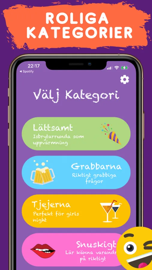 Två av spelarna sitter på varsin stol med ryggarna mot varandra. En annan person håller telefonen och läser upp påståendena.