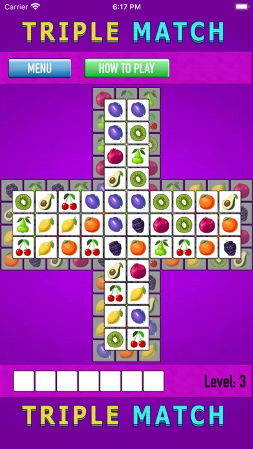 Select and move tiles one by one to seven free places. Three matching tiles will be destroyed. Clear the board to move to the next level.