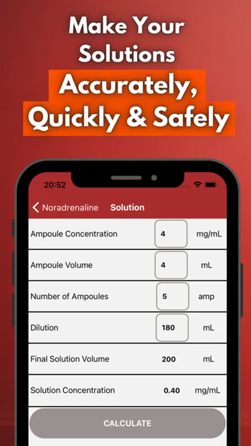 This application was made by doctors to facilitate the day-to-day of the professional who works in urgency, emergency, intensive care or with critically ill patients and need to calculate the concentration of the solutions used and infusion speed quickly. The application has a suggested standard solution based on the schemes most used in intensive care services and allows editing and saving your favorite solutions.