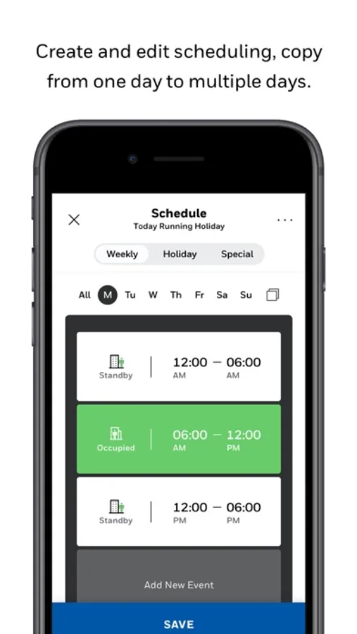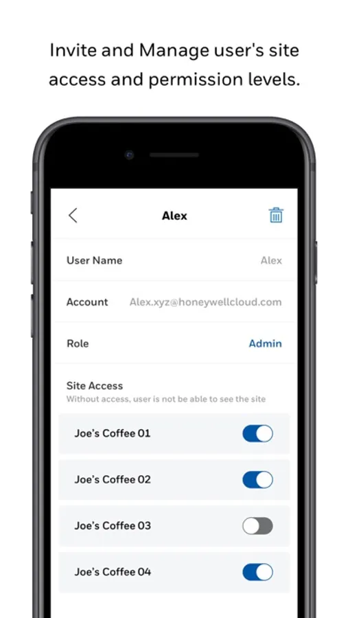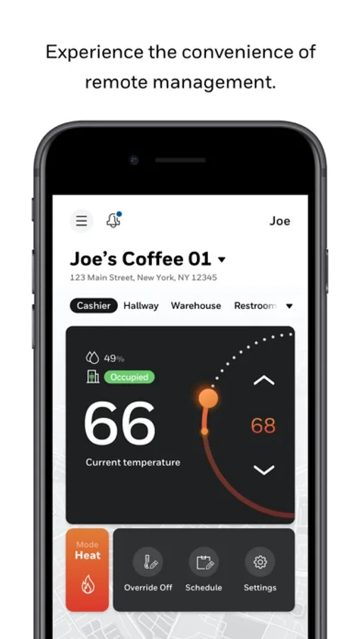 The Honeywell Connect Me app gives authorized users access to the Honeywell TC500 Thermostats in their commercial buildings. Remotely monitor sites, schedules, settings, and override controls. Add and configure devices, manage users and more – all from a mobile device.