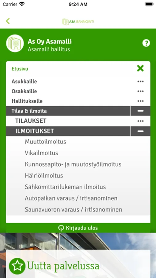 Sähköisen asioinnin kanavana luomme sinulle mahdollisuuden saada informaatiota ja hoitaa asumiseen liittyvät asiat sinulle sopivana ajankohtana paikasta riippumattomasti. Pääset tekemään ilmoituksia ja tilauksia isännöitsijätoimistollesi sinulle sopivimpana ajankohtana ja tietysti paikasta riippumattomasti. Tuomme lisäksi mahdollisuuden saada informaatiota asumisympäristöstäsi sekä pääset yhdellä kirjautumisella kaikkien taloyhtiösi yhteistyökumppaneiden tarjoamiin tietoihin keskitetysti.