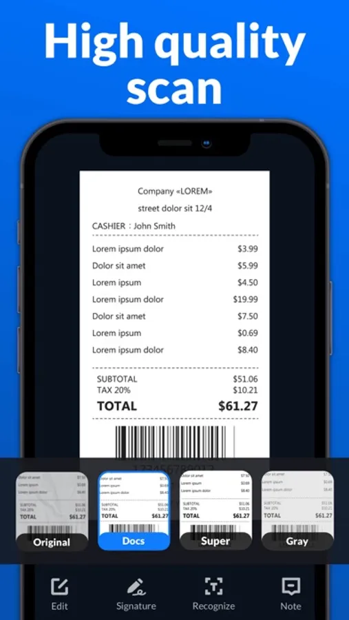 Easily scan & convert all kinds of documents to PDF format in a simple tap - receipts, invoices, notes, documents, photos, business cards, certificates, whiteboards, etc.