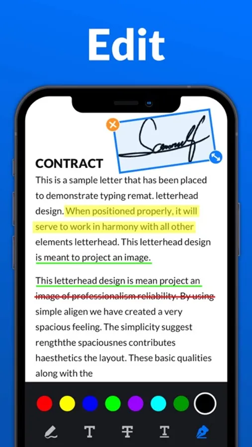 The advanced editing feature allows you to add annotations to the scan results. Conveniently review and mark the scanned documents!