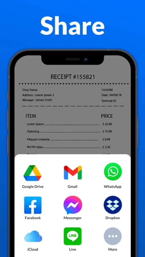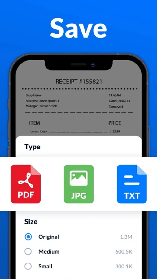 Conveniently share scanned files in PDF or JPEG formats with friends via Email, or post them on social media. Save and view the scanned files anytime, anywhere.