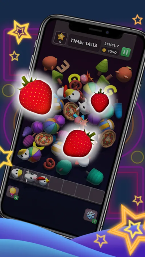 Choose three same projects from randomly placed items! Be carefully, don't fill up the collect bar!