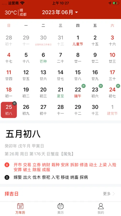 提供万年历查询、日历查询、天气预报、黄历宜忌、节日节气等实用功能。