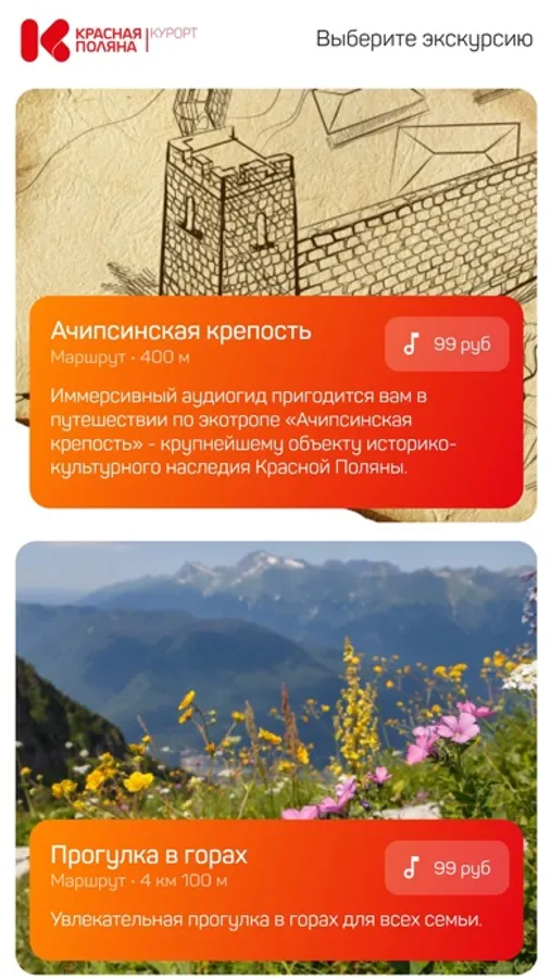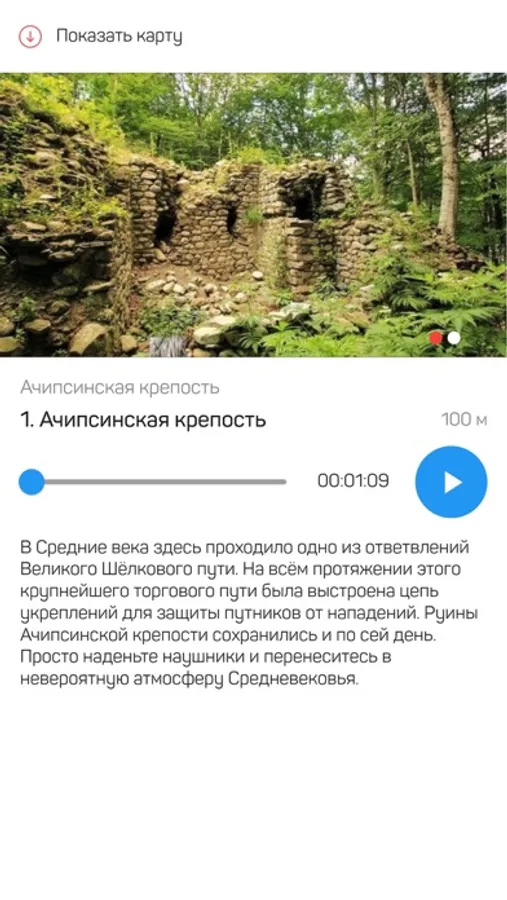 Иммерсивный аудиогид пригодится вам в путешествии по экотропе «Ачипсинская крепость» - крупнейшему объекту историко-культурного наследия Красной Поляны. Тропа расположена на хребте Ачишхо напротив Курорта Красная Поляна.