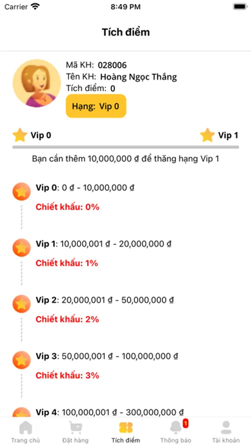 Tạo tài khoản, tích điểm cho mỗi đơn hàng và nhận được các quyền lợi cho thành viên VIP của HVT. Ưu đãi VIP được sử dụng đồng thời cùng tất cả các CTKM khác.
