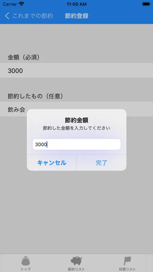 ②何かを買うのを我慢したら、我慢した金額を登録して貯金する