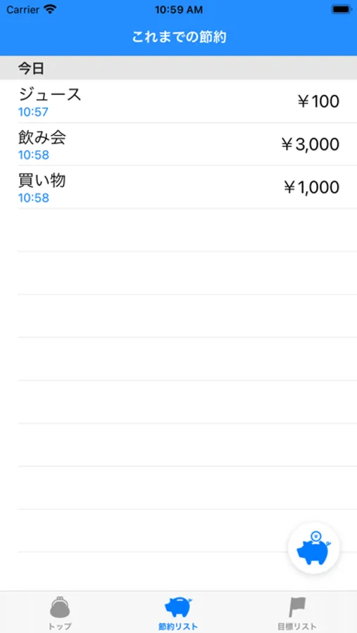・これまでの貯金額や、目標までの金額がトップ画面からひと目で確認可能
