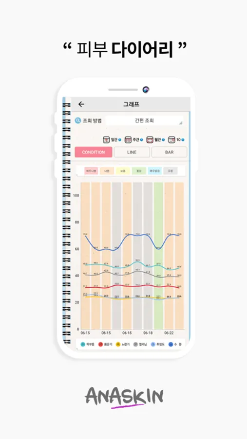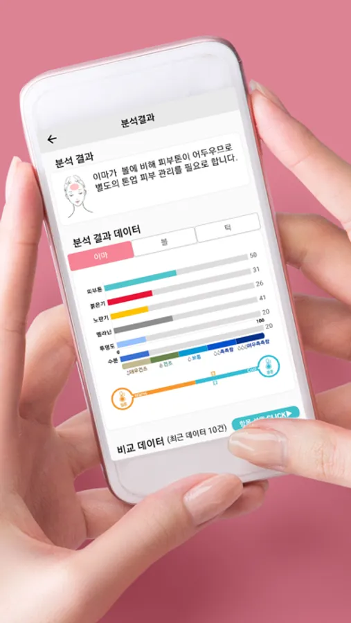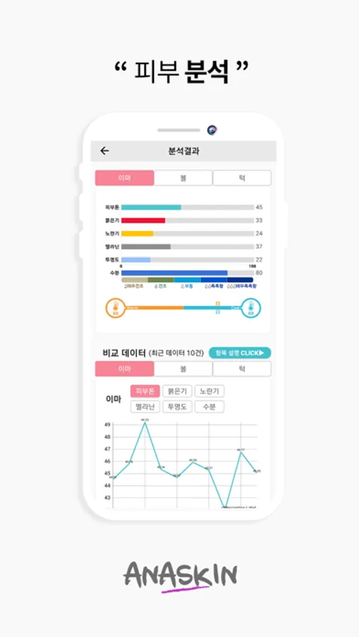아나스킨 측정 장비를 이용하여 피부를 측정합니다.