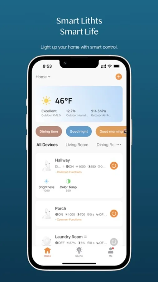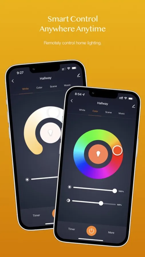 4. Control your smart light regardless of distance. As long as you have a network, you can use smart phone to control the lights anytime, anywhere.