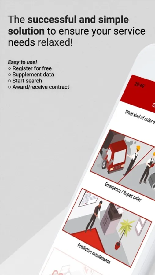 On the B2B platform eServSol (easy Service Solution), companies can find the right craftsmen and technical service partners and book them with just a few clicks. eServSol also meets the high expectations of users in terms of user-friendliness. After registering free of charge, companies can search in countless specialist areas and preset relevant search criteria such as qualifications. Together with our network, unnecessary travel, inconvenient lead times, long waiting times and high costs are a thing of the past. The platform distinguishes between three job classifications, repair/emergency, predictive maintenance and new projects (offers) that are being planned. For emergencies and repairs that need to be fixed quickly, the platform offers the advantage of finding the right technical service partners/tradesmen quickly and easily on site.