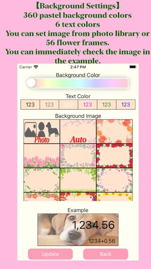 - Set a photo album photo, image, or 56 types of floral illustrations as the background image.