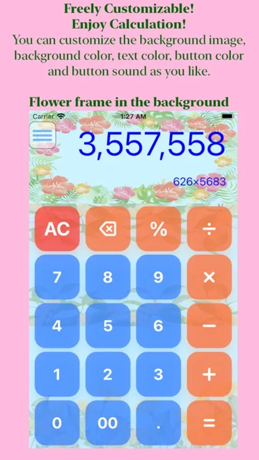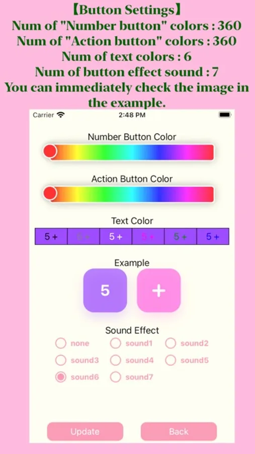 - Set the background color of the number buttons and action buttons other than numbers from 360 colors respectively.