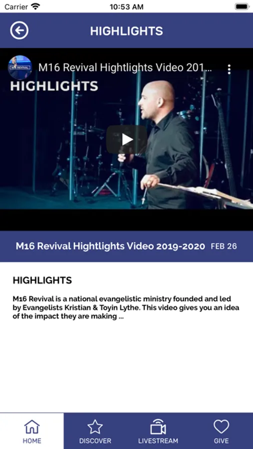 -Stream all services and events from M16 Revival live on the app and never miss a chance to get encouraged even on the move.