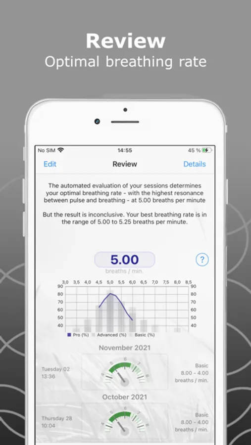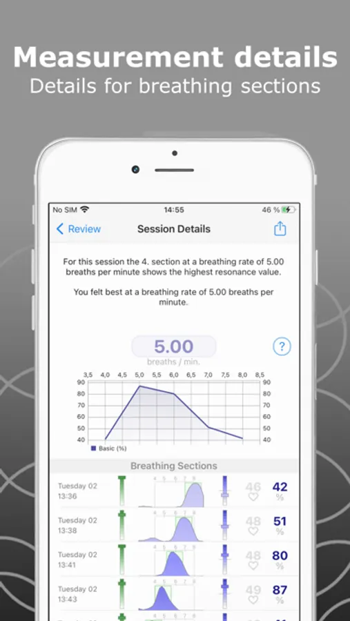 And if you want to become a BreathTuner Pro-User, even more detailed analysis is available via an In-App Purchase. You can then determine your individual breathing resonance frequency with very high accuracy!