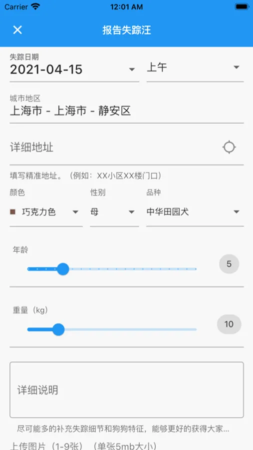 * 经过精心设计的寻狗启事表单,为提高搜索成功率提供了保障。