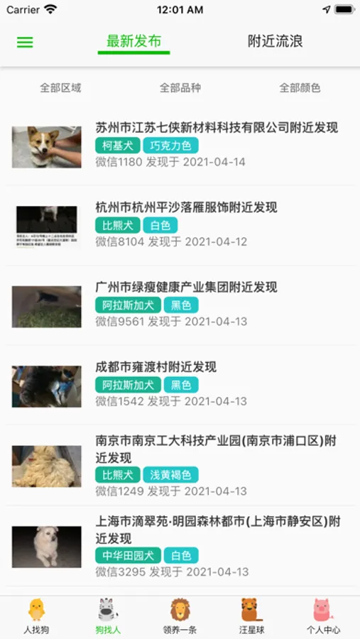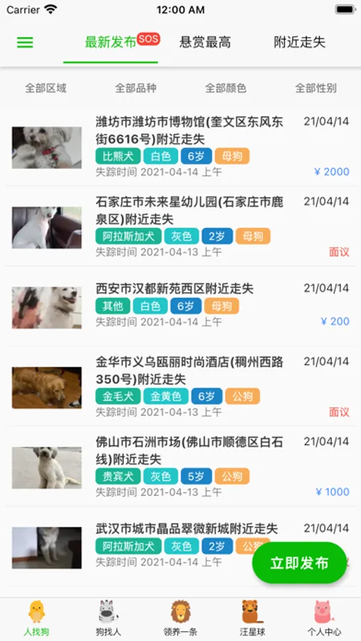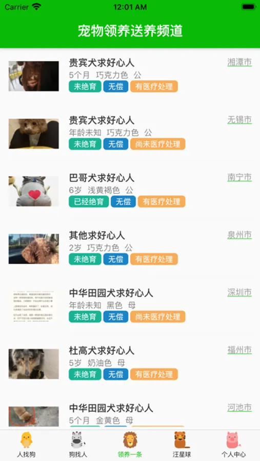 * 寻狗启事,寻主启示,流浪狗领养送养三大品类。