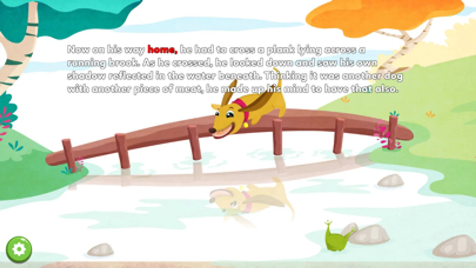 When he crossed a running brook, he looked down and saw his own shadow reflected in the water beneath. Thinking it was another dog with another piece of meat, he made up his mind to have that also.