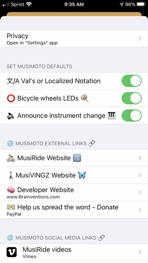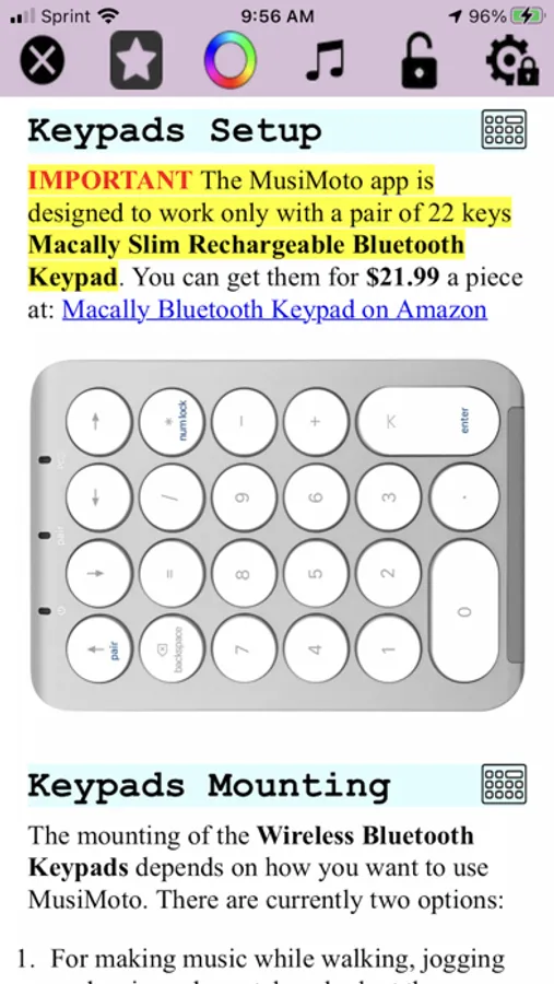 The MusiMoto app is a component of a Do-It-Youself (with some help) system designed to empower anyone who likes playing MIDI musical instruments to do it while walking, jogging, riding bicycle and even dancing. The hardware is a pair of commercially available keypads. The functionality of the entire system including instructions on how to make it yourself is described in the Support website.
