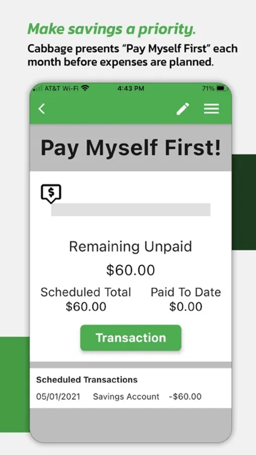 o Cabbage will break the expense into monthly payment (or savings) to make sure the user has saved enough to pay for the expense when it comes due.