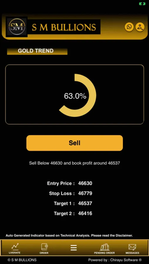 The app has a special feature of predicting GOLD TREND using various analysis tools.