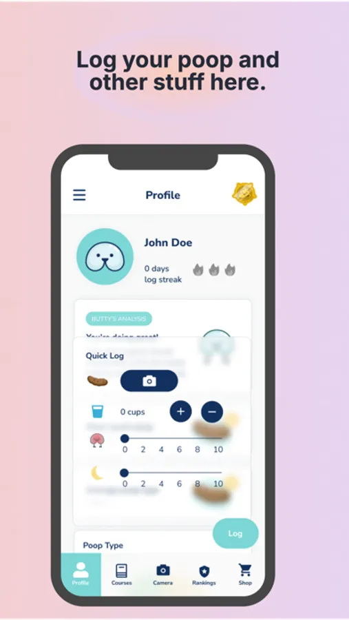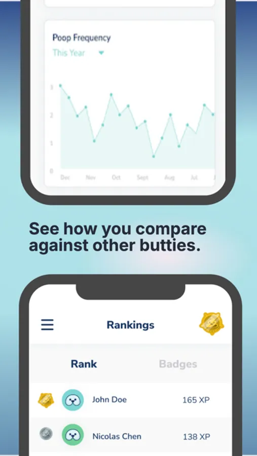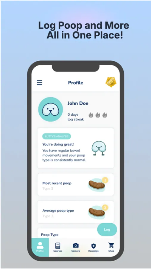 - View a data breakdown and graph of your poop statistics over time to create positive changes.