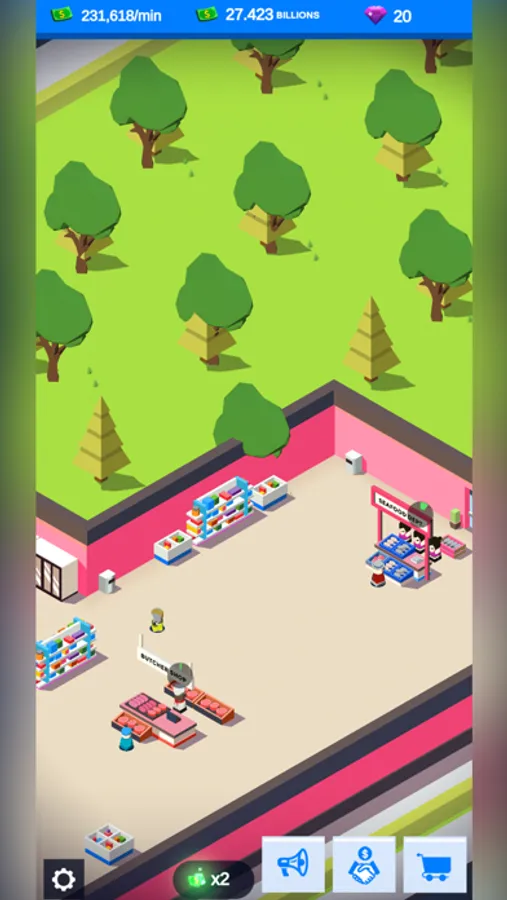Build your first store, manage and try to expand it. As long as you hold enough money, new markets and more customers will be served!