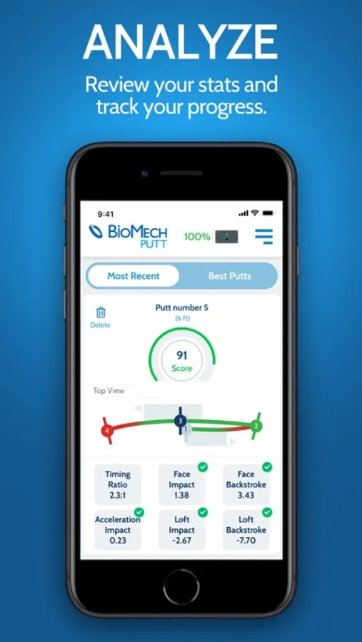 PUTT is the most powerful, scientific putting system in the world. Created by BioMech, leaders in health and performance motion science, PUTT instantly captures, quantifies and analyzes your putting stroke and streams relevant information and biofeedback instantly to your mobile device, adding insights and enjoyment to practice while subtracting strokes from your game. Any golfer, regardless of skill level, now has a mobile putting analysis system to measure, analyze and improve their score.