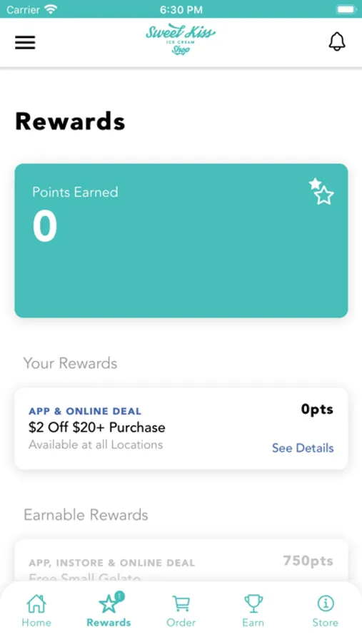 Sweet Kiss Ice Cream App - Earn and track your rewards at participating stores
