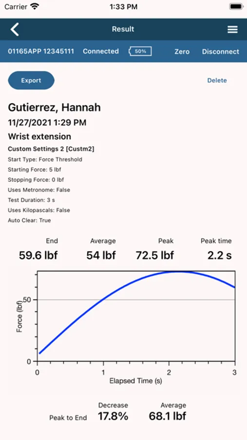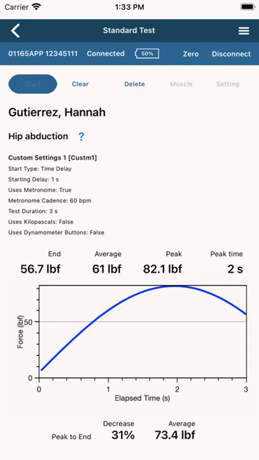 DynoData is designed to work in conjunction with Lafayette Instrument’s 01165APP Hand-Held Dynamometer. DynoData provides a wireless connection between the 01165APP Hand-Held Dynamometer and a tablet or smartphone. This connection allows for a real-time visual display of the force being applied to the dynamometer. Customizable test setups can be modified, saved and named within DynoData. Subject results can be conveniently stored on the tablet for data analysis and easy export of raw data can access to historical charts. With simple controls, Dynodata will improve the organization and efficiency of patient care. Contact Lafayette Instrument for more information.