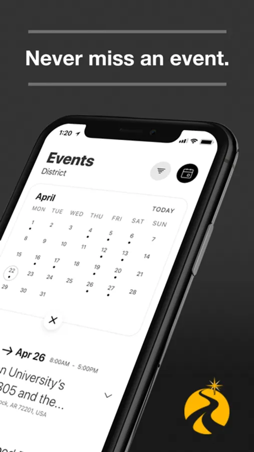 The event section shows a list of events throughout the district. Users can add an event to your calendar to share the event with friends and family with one tap.
