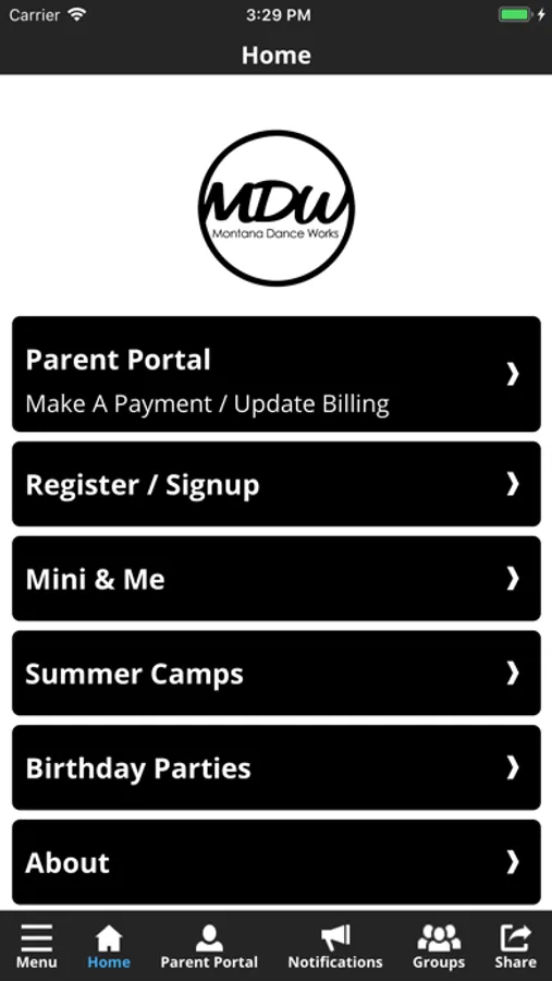 The Montana Dance Works app allows you to manage your account with ease, register for classes, parties and special events. You'll also receive important notification about class changes, closings, registration openings, special announcements, and upcoming events.