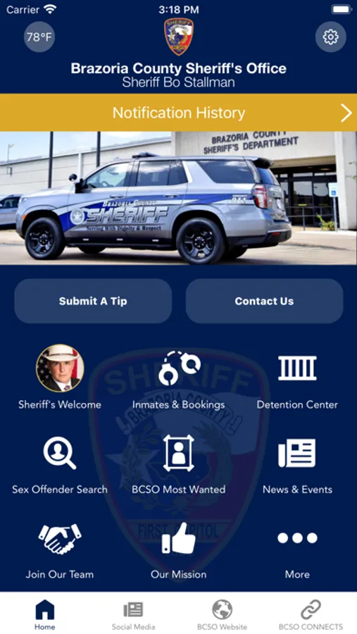 The Brazoria County Sheriff’s Office mobile application is an interactive app developed to help improve communication with residents and visitors. The Brazoria County Sheriff’s Office App allows the community to connect with the Brazoria County Sheriff’s Office by submitting tips, easy navigation features, receive important push notifications and other interactive features, as well as providing the community the latest public safety news and information.