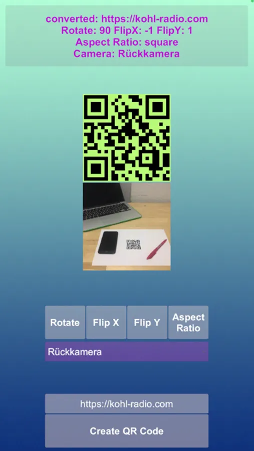 For example, if you have your phone stationary, you can adjust the rotation and mirroring, as well as the aspect ratio of the camera to your taste, so that you always have the perfect view of the codes.