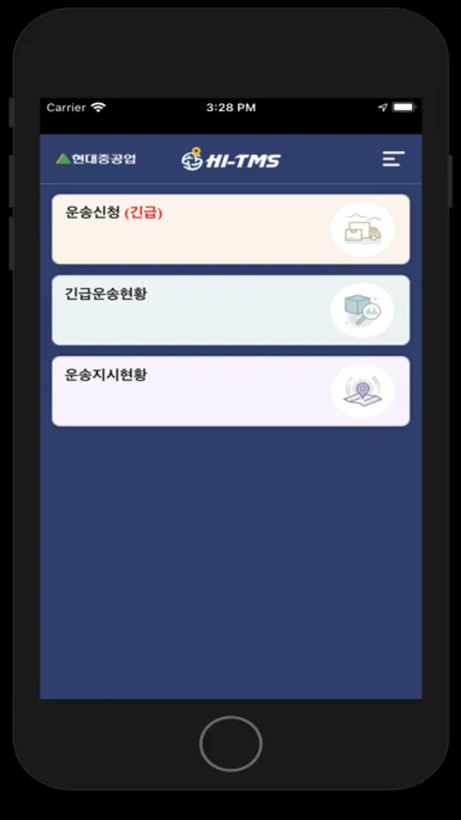 현대중공업 국내 운송 모바일 시스템(운송사용) 어플 입니다.