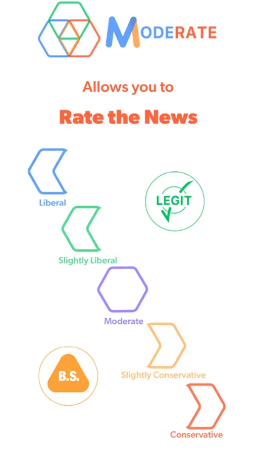 MODERATE is a news aggregate app that allows users to read multiple perspectives on current news topics, rate article bias, and view how others view an article's bias. The vision and purpose is to allow everyone to see others' perspectives, honor news article legitimacy, and bring everyone closer to the truth.