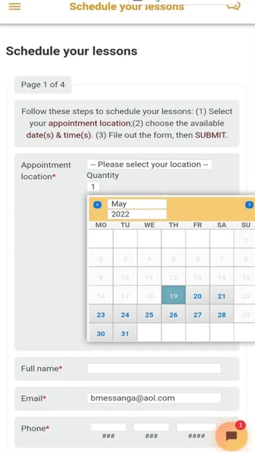 (4) Submit the form, then wait for an instructor at your preferred location (home/office/store ...etc)