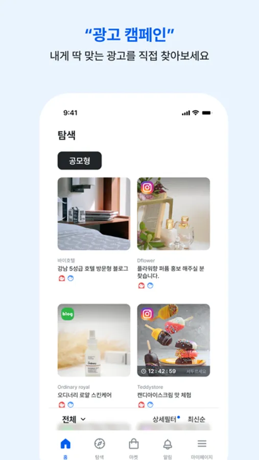 광고 캠페인 > 내게 딱 맞는 광고를 직접 찾아 진행하고, 현금 리워드도 얻을 수 있어요.