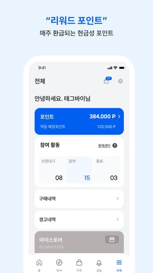 미션을 완료하면 리워드가 포인트로 적립됩니다.