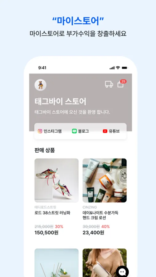 팔로워들이 마이 스토어에서 구매하도록 링크를 SNS에 공유하세요.