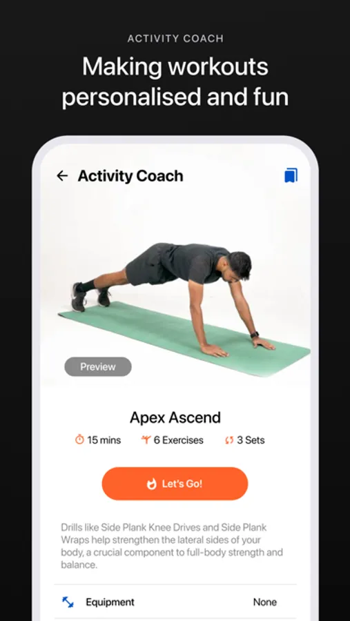 Activity Coach: Crafted your perfect workout plan based on your preferences and tracked data. Don't like it? Choose from a diverse collection of activities.