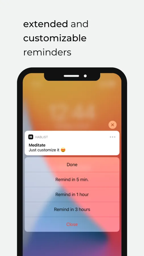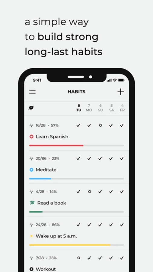 Customization. Icons and colors for your list of habits, dark mode support, 5 stylish app icons of your choice, weekday selection, and custom order of habits.