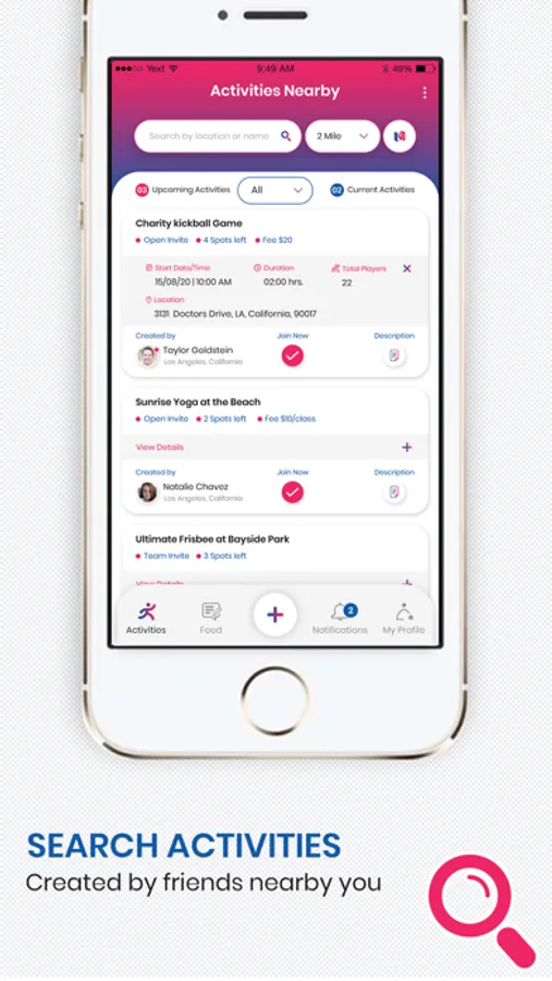 Create a custom activity or pick from our list of popular activities which include basketball, soccer, yoga, fitness classes, plus more! The possibilities are endless.