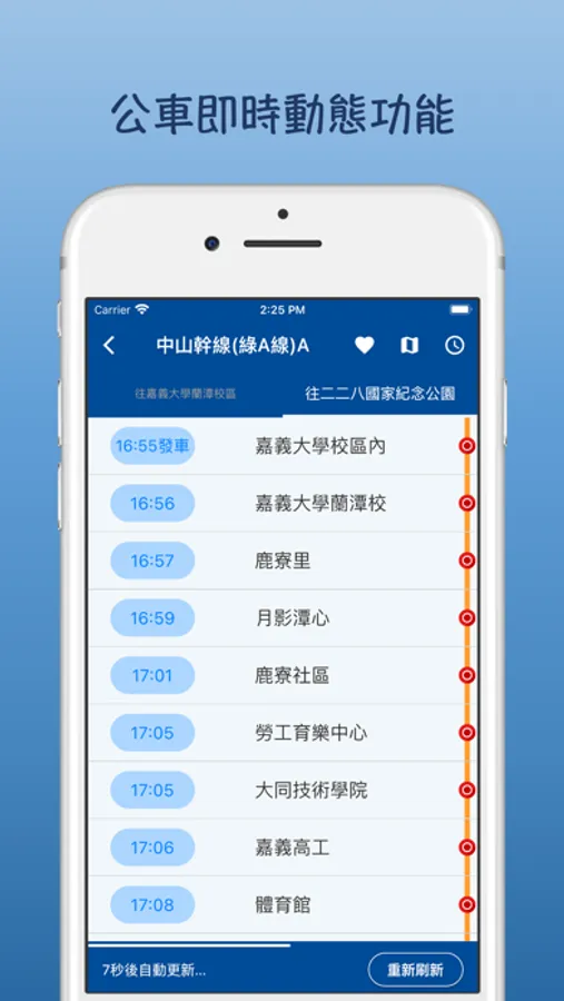 漂亮簡單的操作介面,提供公車即時動態給您!