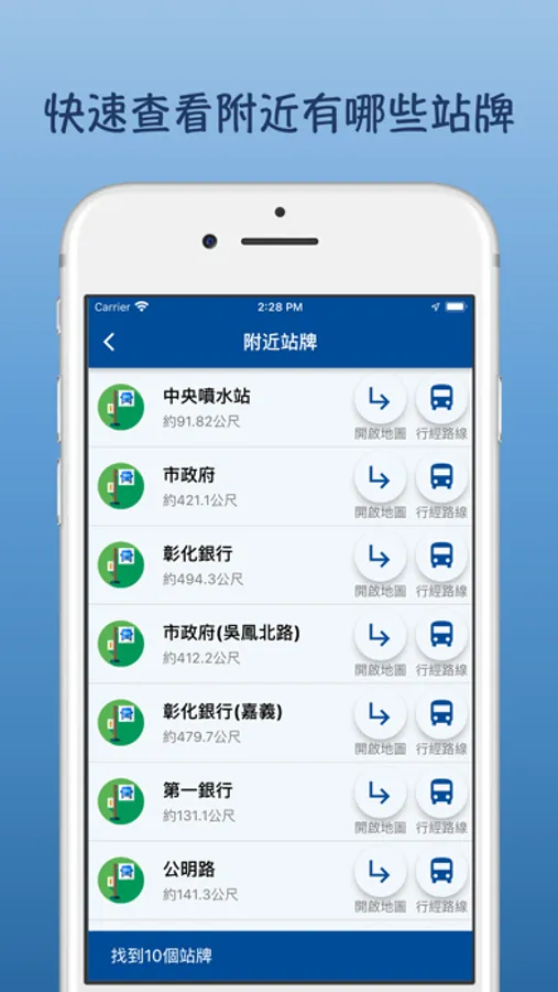 附近站牌 - 顯示您附近可搭乘站牌 !