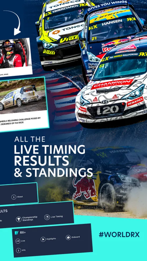 Get right to the heart of the action with the official FIA World Rallycross Championship App. Stay fully up-to-speed with the latest World RX videos and news while following all of the races LIVE!