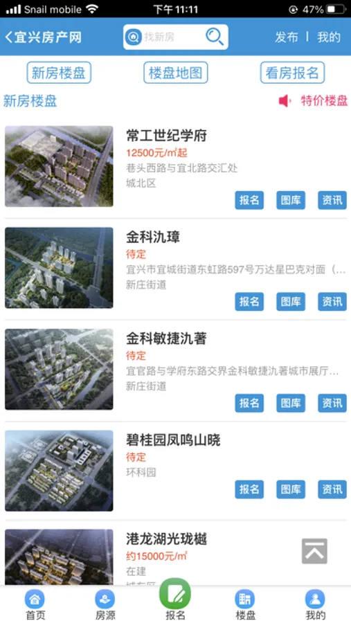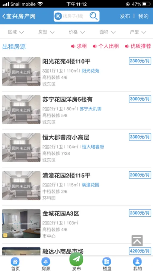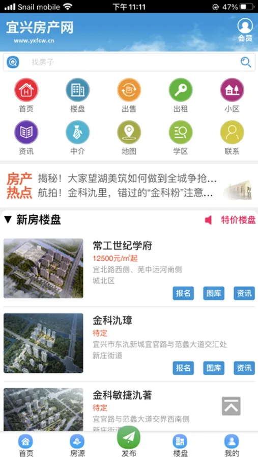 宜兴房产网客户端主要包含新楼盘,二手房,租房,房产资讯信息展示几个大类,用户类型分为个人用户,中介用户和楼盘销售用户。个人用户可以发布个人出售房源,出租房源,个人求购求租信息;中介用户可以拥有经纪人权限,发布,刷新公司的房源信息,也可以随时查看网站上登记的个人房源通道,随时随地掌握一手房源资源;楼盘销售用户可以发布,管理新楼盘信息,随时查看网友在线报名情况,掌握最新一手客源。个人用户可以通过客户端掌握本地房源信息,中介公司和楼盘销售可以实现无纸化办公,通过客户端可以轻松获得客源。