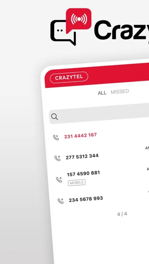 Make and Receive calls with Crazytel with your existing account. Our Application supports the existing Crazytel features in addition of: